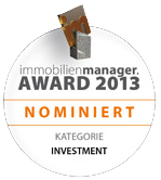 Habona Invest kann sich über eine weitere ganz besondere Wertschätzung freuen. Auf Grund seiner einzigartigen Anlagestrategie ist das Frankfurter Emissionshaus in der Kategorie "Investment" für den immobilienmanager AWARD 2013, einer der renommiertesten Auszeichnungen der deutschen Immobilienbranche, nominiert worden. Das innovative Kurzläuferkonzept - kurze 5 jährige Fondslaufzeit, weit über die Fondslaufzeit hinaus - hat bei der unabhängigen Fachjury punkten können.
